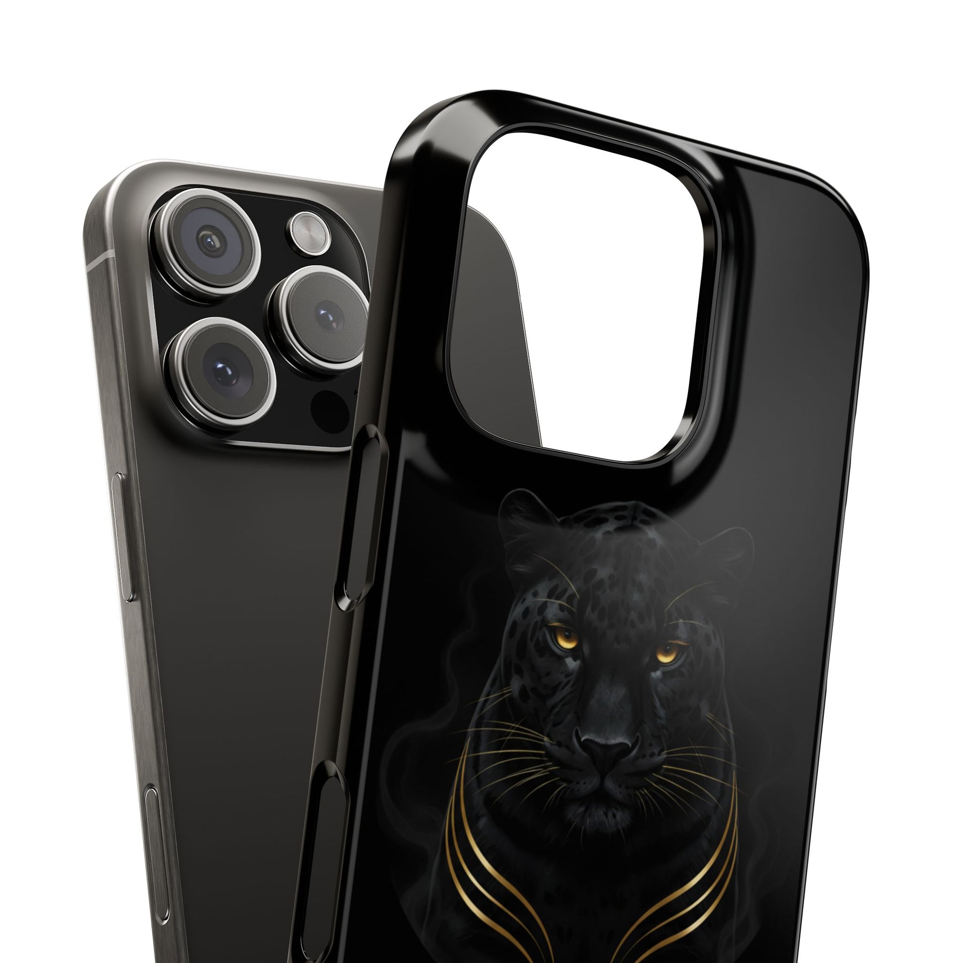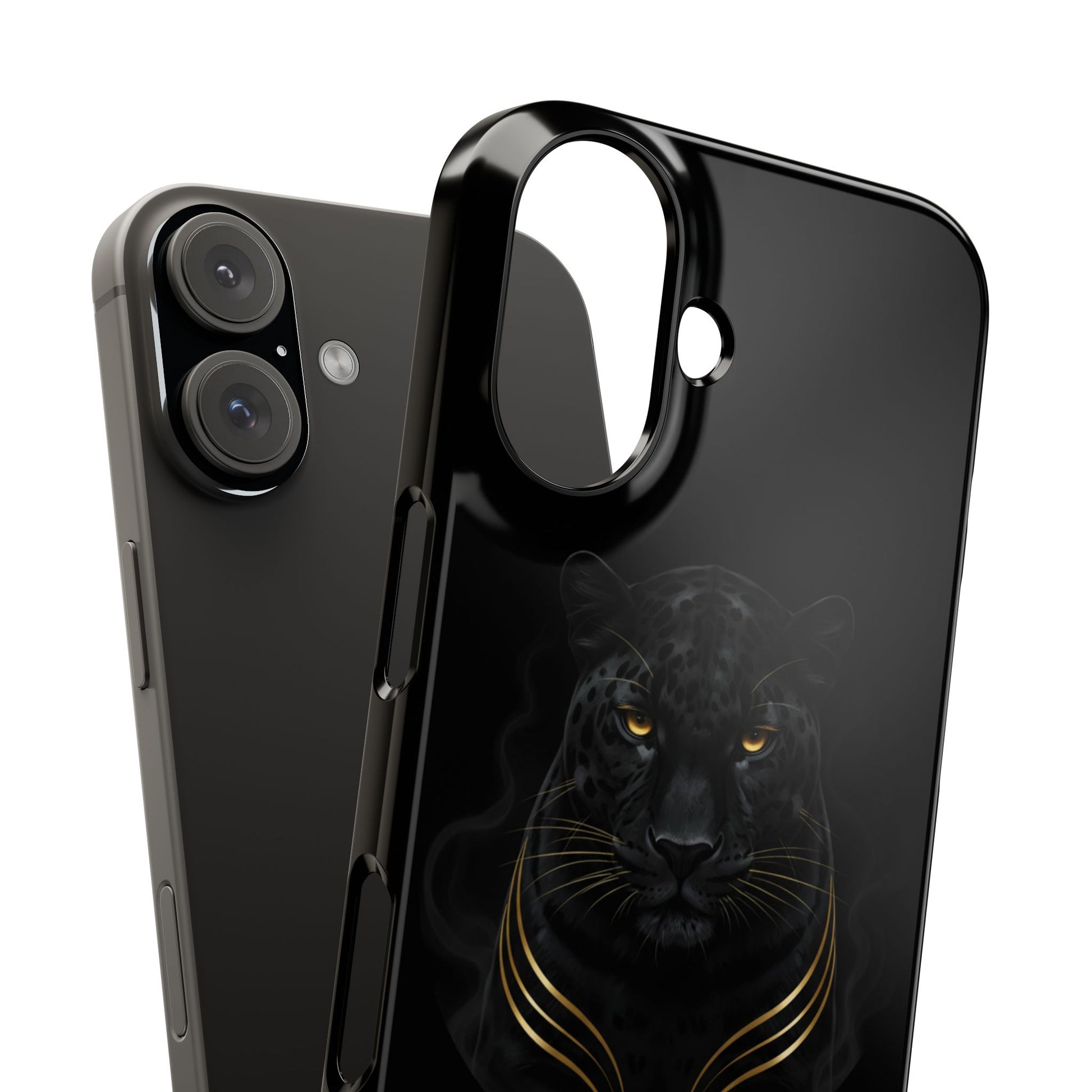 Slide this slim phone case onto your device and feel the quiet confidence it brings. The deep black background and subtle, gold-accented panther illustration read as elegant and a little fierce—made for people who appreciate refined edge without shouting. Its glossy finish makes the artwork pop while the slim bezel keeps the screen safely lifted from flat surfaces. Lightweight, impact-resistant Lexan protects daily bumps and still supports wireless charging, so your phone stays both stylish and functional.