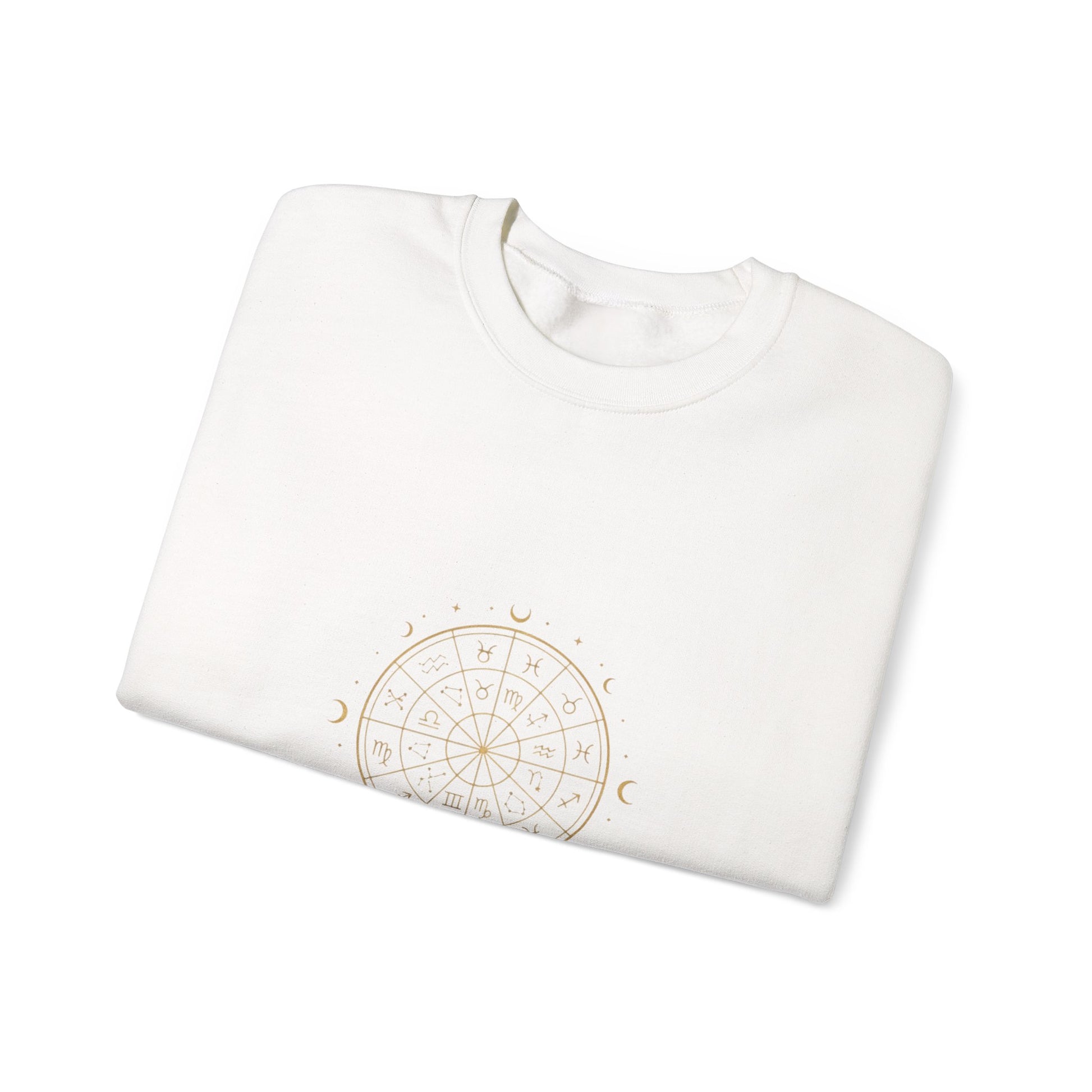 Delicate embroidered celestial compass rendered in fine gold thread on a soft crewneck, blending minimal line art with an introspective astrology mood. The subtle moon phases and dotted constellation map create a quietly mystical look that reads as modern celestial decor for everyday wear. Designed for star-sign enthusiasts who favor refined, midnight-inspired stationery of style—this sweatshirt layers easily under coats or pairs with jeans for contemplative city nights or cozy reading days. Product features - Medium-heavy 8.0 oz/yd² (271 g/m²) 50/50 cotton-polyester blend - Classic fit crewneck with double-needle stitching for durability - Embroidery available on left chest, center chest, large center chest, or wrists - Tubular knit construction without side seams - Made in Nicaragua; meets safety and environmental standards (OEKO-TEX dyes) Care instructions - Machine wash: cold (max 30C or 90F) - Non-chlorine: bleach as needed - Tumble dry: low heat - Do not iron - Do not dryclean